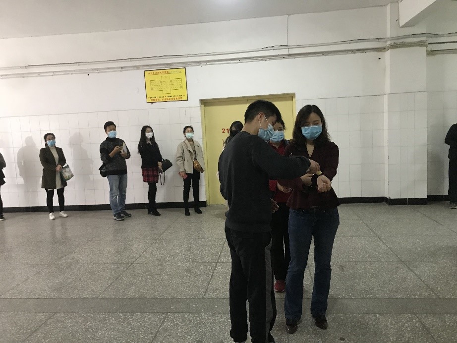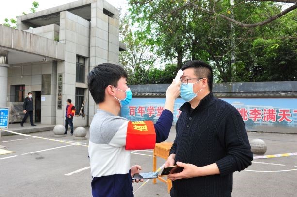 鉴于手持体温枪检测效率较低,学校购买安装了人体红外测温门,以提高检测效率,学生保持适当距离排队,通过测温门检测体温,体温正常同学即可进入安全检查通道后入校,体温异常同学登记班级姓名,在校外隔离区留观,等待工作人员进行体温复测,对高于37.3°的同学,由工作人员通知家长,上报学校疫情防控领导组,并按规定逐级上报。同时,联系由白市驿镇卫生院派出120救护车,将体温异常学生带到镇卫生院作进一步的检查。