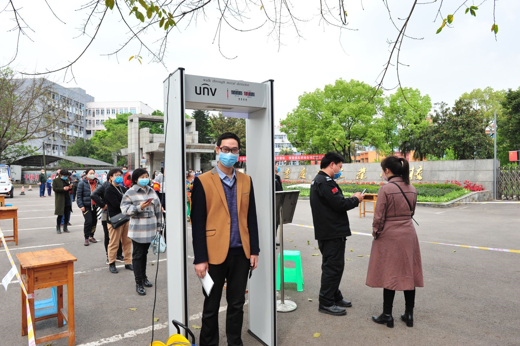 4月7日下午2时许,全体在校教职员工到学校校门口集结,开始开学入校演练,整个演练过程分为身份核对、渝康码检查、体温检测、进入通道消毒4个环节,由教职员工扮演“学生”模拟着正式开学时学生入校情景。