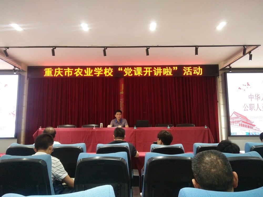 为庆祝建党99周年,进一步促进教职员工学法守法、依法用权、认真履职,营造风清气正的良好工作氛围,6月28日下午,重庆市农业学校副校长、纪委书记邹世平同志在德政厅为招生就业部、政工人事部、农业机械系、第二支部全体党员同志上了一堂学习“中华人民共和国公职人员政务处分法”的专题党课,拉开了我校“党课开讲啦”的序幕。