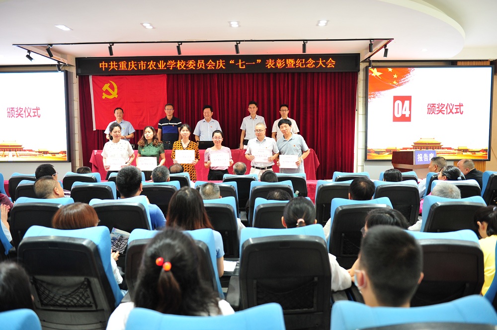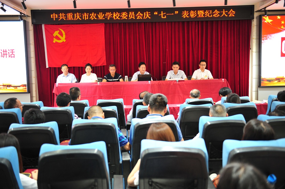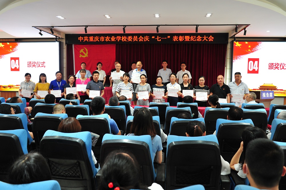 大会在全体参会人员齐声高唱的国歌声中拉开了序幕,随后党委委员、副校长唐光建同志领誓,带领全体党员同志重温入党誓词。党委委员、副校长敖建同志宣读了表彰先进基层党组织、优秀共产党员和优秀党务工作者的决定。授予第一支部、第五支部“先进基层党组织”荣誉称号,同时表彰了张馨月等19名优秀共产党员和张开会等6名优秀党务工作者。优秀党务工作者代表杜华平、优秀党员代表徐爱平分别发言,表示作为工作在第一线的党员教师,一定不忘育人初心,牢记教师使命,用实际行动向党的生日献礼。