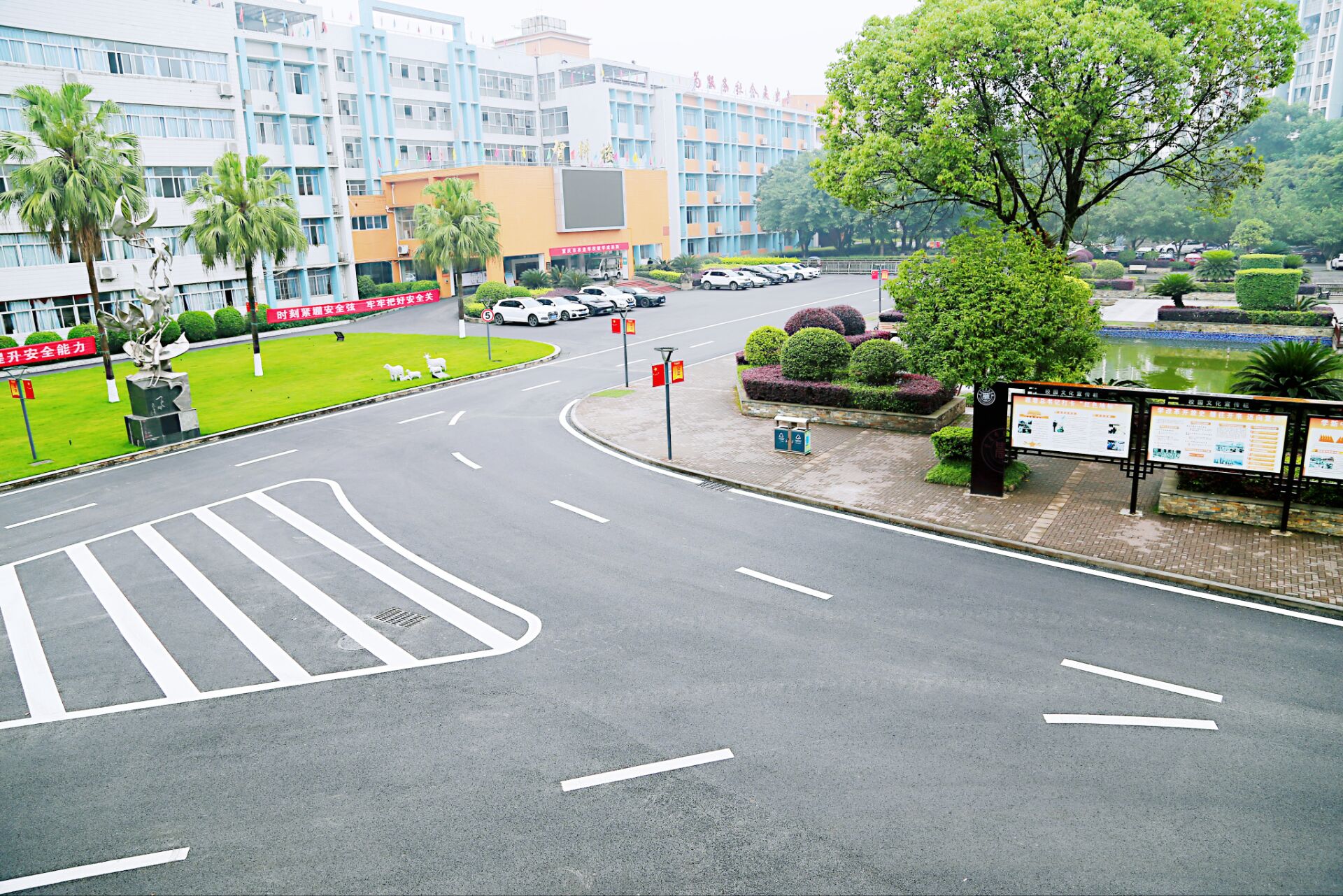防汛及道路安全隐患排除项目共改造校园路面约18168.4平方米,排水沟提升203.18米、路缘石提升132.43米、预埋管提升33.14米,雨水口提升59座、污水井提升50座、电力井提升20座及其它井提升17座。通过注浆加固校园道路基础、增加道路宽度、铺设路面沥青及规范校园道路标志和停车位划线,提升排水沟、雨水口、污水井及电力井等,不仅排除了校园防汛及道路安全隐患,还使校园道路更加平整宽敞,师生通行更加方便,校园环境更加优美,获得学校师生的一致好评,形成了一张靓丽的校园“名片”,营造了良好的育人环境。
