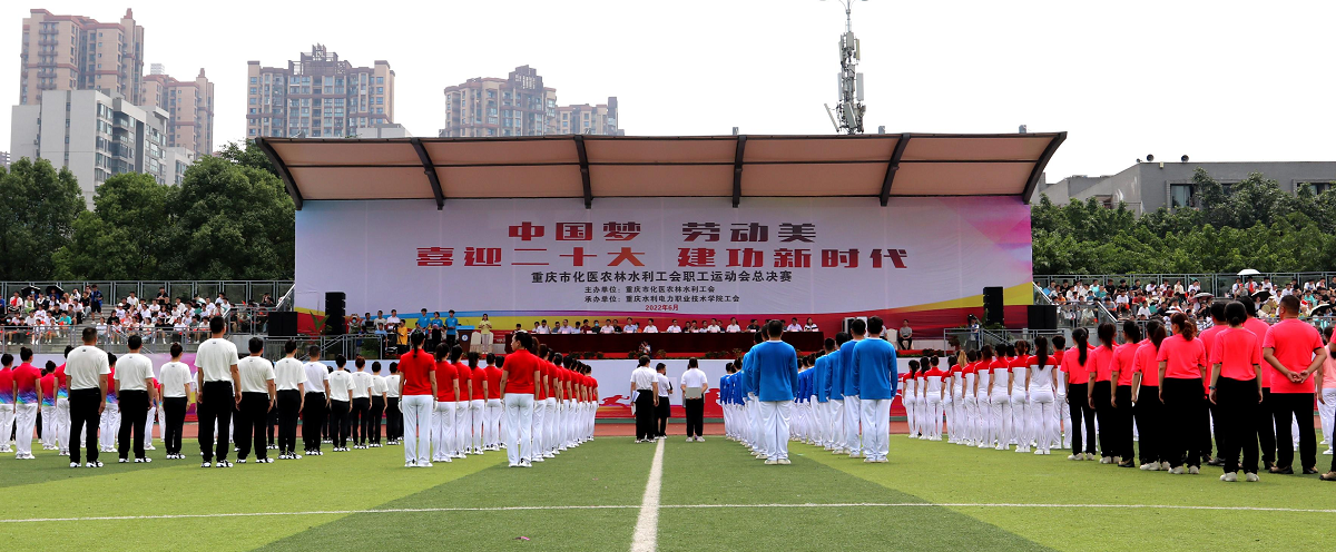 为动员干部职工积极参加体育文化活动,以实际行动迎接党的二十大胜利召开,6月22日,重庆市化医农林水利工会 “中国梦 劳动美——喜迎二十大 建功新时代 ” 职工运动会总决赛在重庆市永川区重庆水利电力职业技术学院成功举办,我校广播体操和拔河代表队在前期初赛中力压群雄,突出重围,顺利进军此次总决赛。