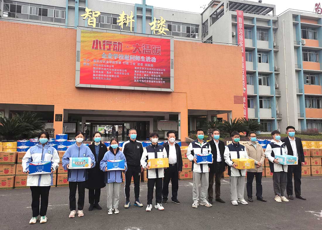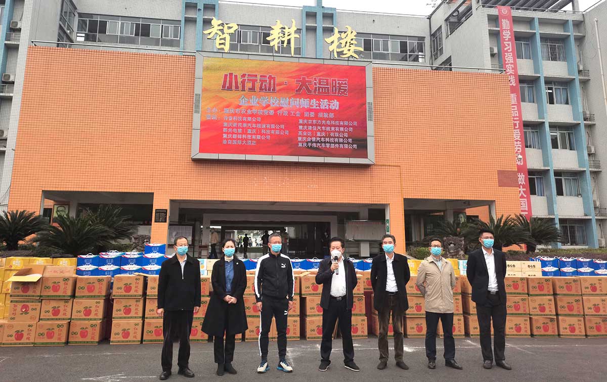 本次慰问活动学校高度重视,学校党政领导班子出席了慰问仪式。活动开始,王华平校长首先对传音科技有限公司、重庆京东方光电科技有限公司、重庆新民康汽车线束有限公司、重庆津住线束有限公司、重庆合信汽车科技有限公司等11家校企合作企业的赞助表示忠心的感谢,教导学生们要懂得感恩,疫情当下珍惜企业提供的实习机会,期望学生们努力学习,走出社会,服务大众;同时祝愿此次活动取得圆满成功。