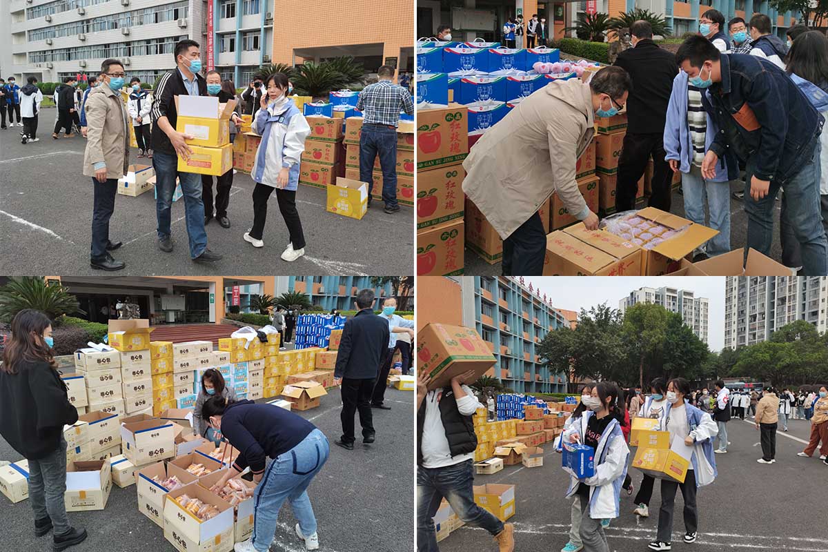 学校领导不仅关心学生,给予深情厚望,还嘱托全校师生众志成城,攻坚抗疫,亲自为在校师生以及在校退休教职员工分发慰问品。各部门的负责人、老师均积极搬运、分发物资,齐心协力,保障了此次活动的顺利进行。