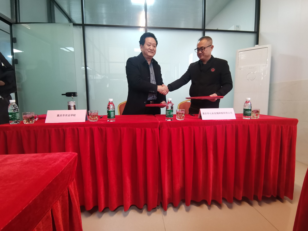 重庆七朵玫瑰种植有限公司聘请副校长陈光涛、植物科学系主任秦海英为玫瑰产品研发和品种选育指导专家并颁发证书