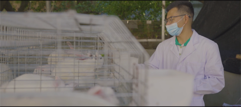 黄吉剑在实训基地参与肉兔繁育实践