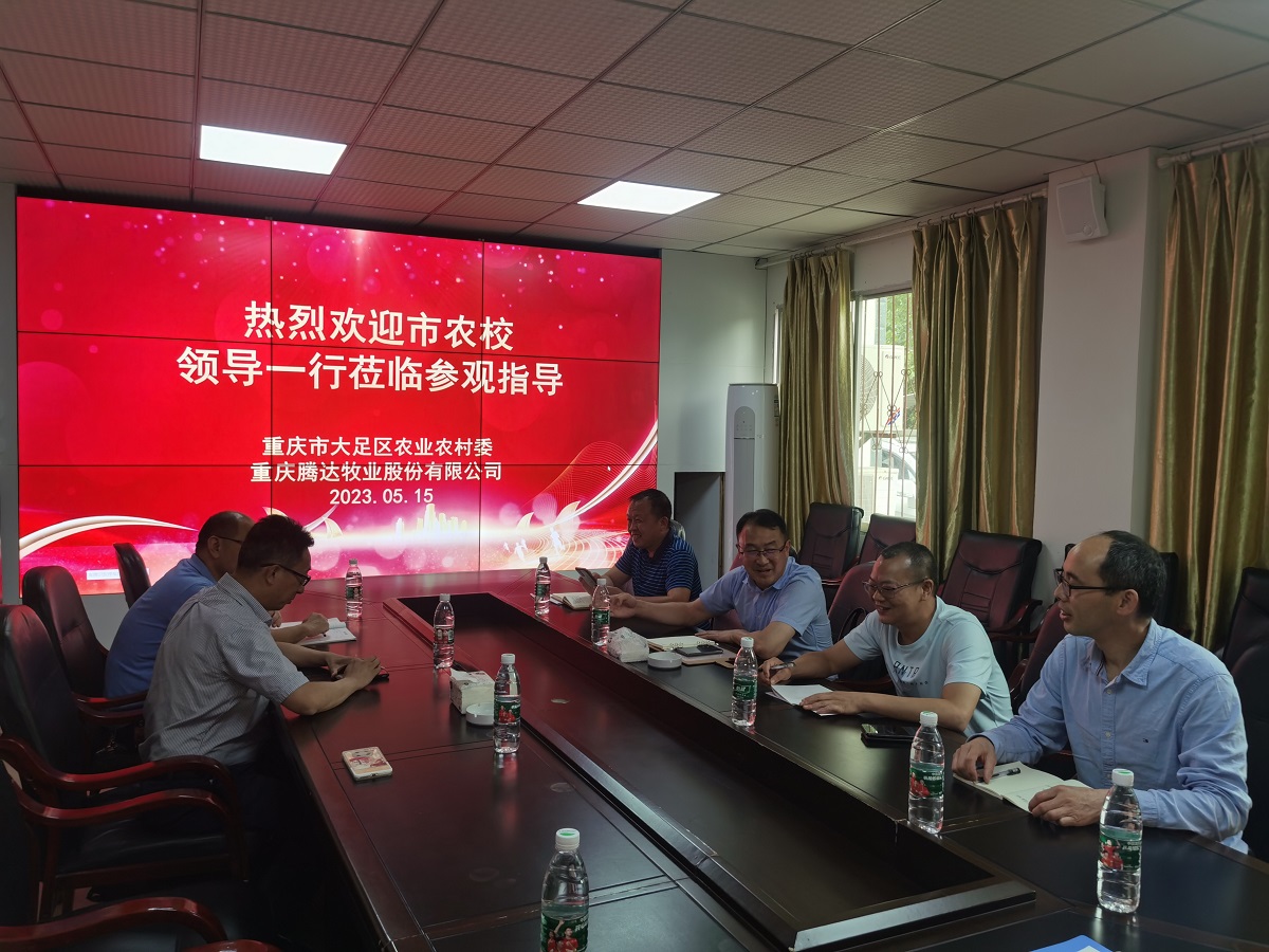 为进一步夯实育人基础,确保产教融合实效,凝练学校专业特色,贯彻数字重庆的理念,积极推进产教融合实训基地的建设,2023年5月15日,重庆市农业学校副校长敖建带领动物科学系主任谷达任及相关教师前往重庆大足腾达牧业股份有限公司开展智慧化畜禽生产产教融合实训基地建设进行调研。参会领导有大足区委农业农村工委委员、畜牧渔业发展中心主任冯中见;大足区畜牧渔业中心副主任汪洋凯;大足区石马镇副镇长杨建军;重庆腾达牧业股份有限公司负责人黄德利等。