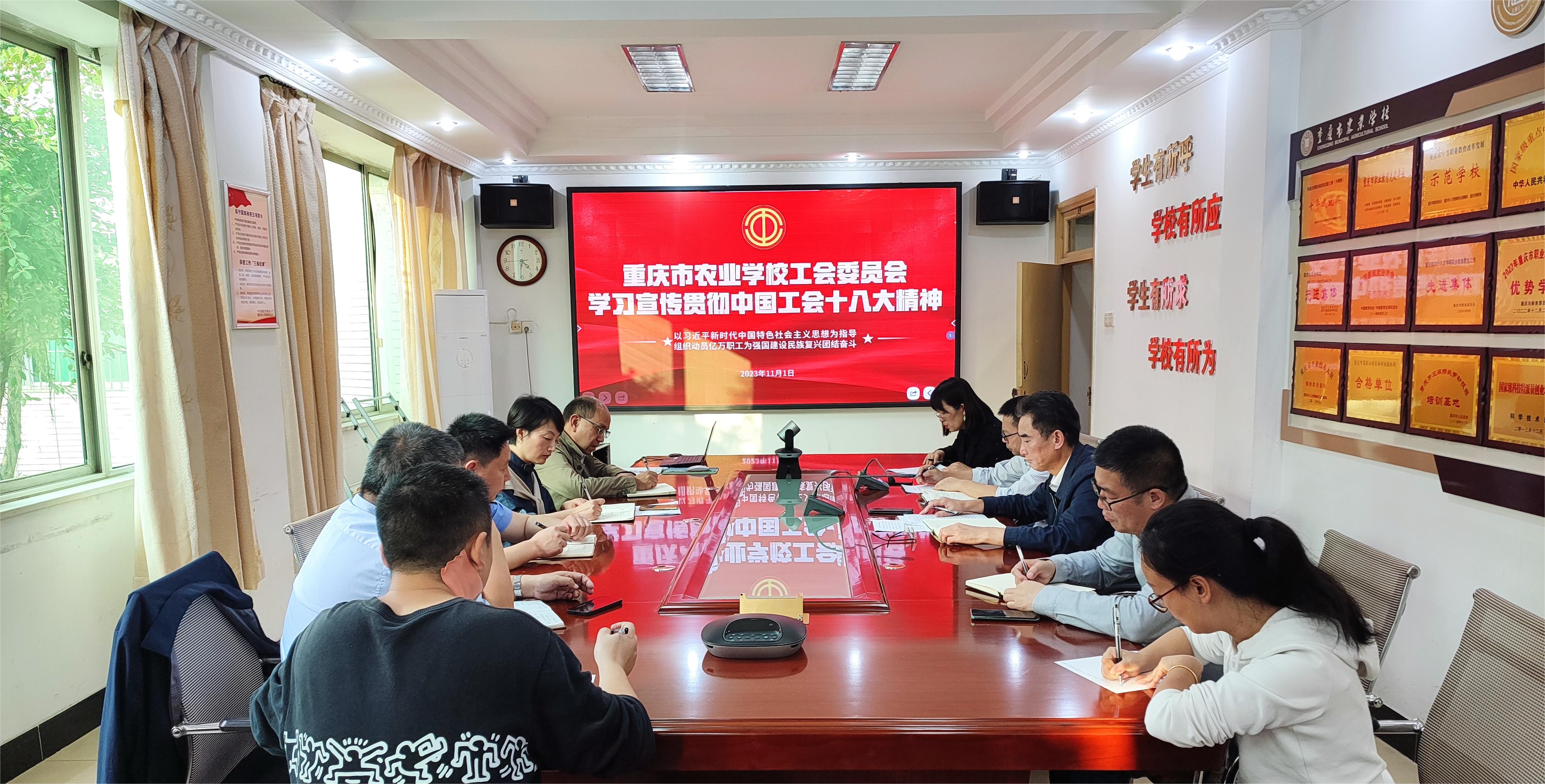 11月1日,重庆市农业学校工会委员会召开了一场深入学习宣传贯彻中国工会十八大精神的专题学习会。会议由学校党委书记、工会主席邹世平主持。全体工会委员会、经审委员会、女工委员会和聘用职工f分会委员会干部,各工会小组组长参加了此次会议。工会宣传委员郭丽娜同志领学了《以习近平新时代中国特色社会主义思想为指导 组织动员亿万职工为强国建设民族复兴团结奋斗》的报告。