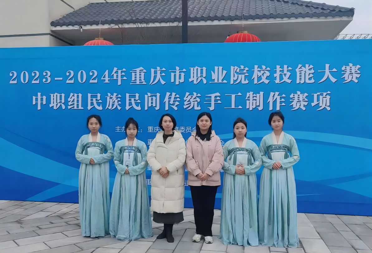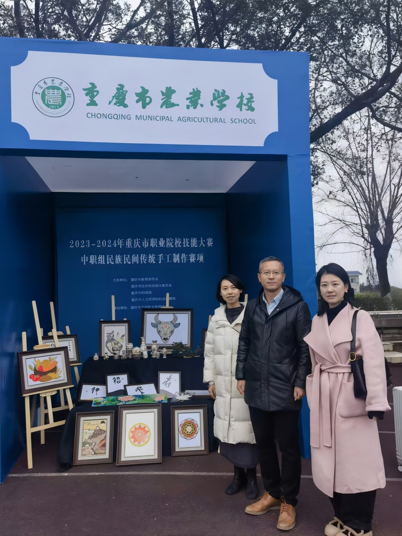 2024年2月29 日,重庆市职业院校技能大赛民族民间手工制作赛项在重庆市万州职业教育中心成功举办。此次比赛全市三十所中职学校共120名学生齐聚一堂,共展风采。作品涵盖五谷粮食画、麦秆画、三峡国画石、烙画、剪纸、泥塑、陶器、雕刻、掐丝珐琅、蜡染等众多非遗手工种类作品。我校首次组队参加该赛项,校领导班子高度重视,分管副校长唐光建亲临现场指导并为学生加油打气。