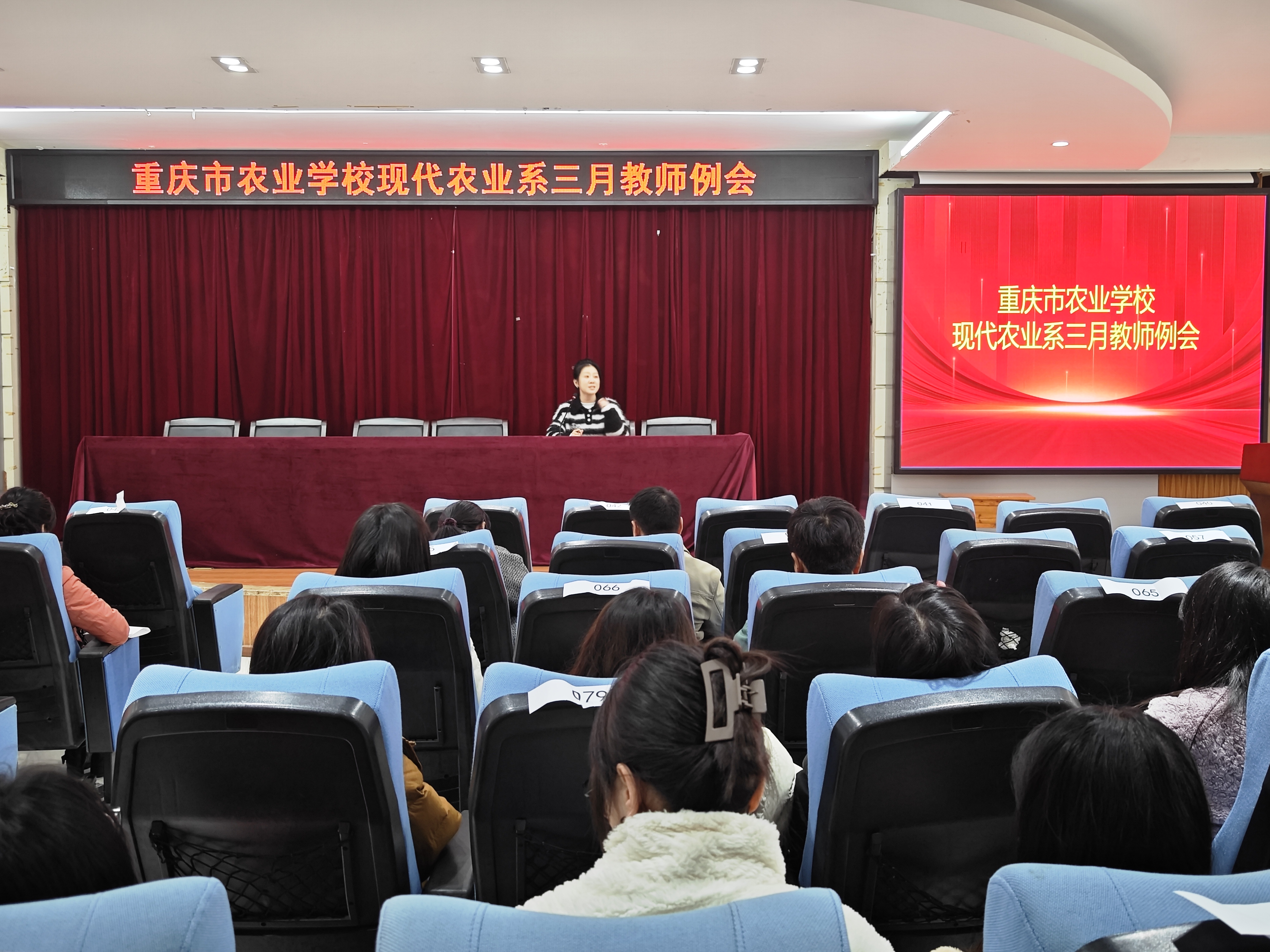 近日,重庆市农业学校现代农业系系部例会如期举行,何可依主任主持会议,现代农业系全体专兼职教师参加会议。