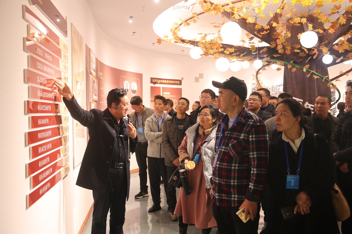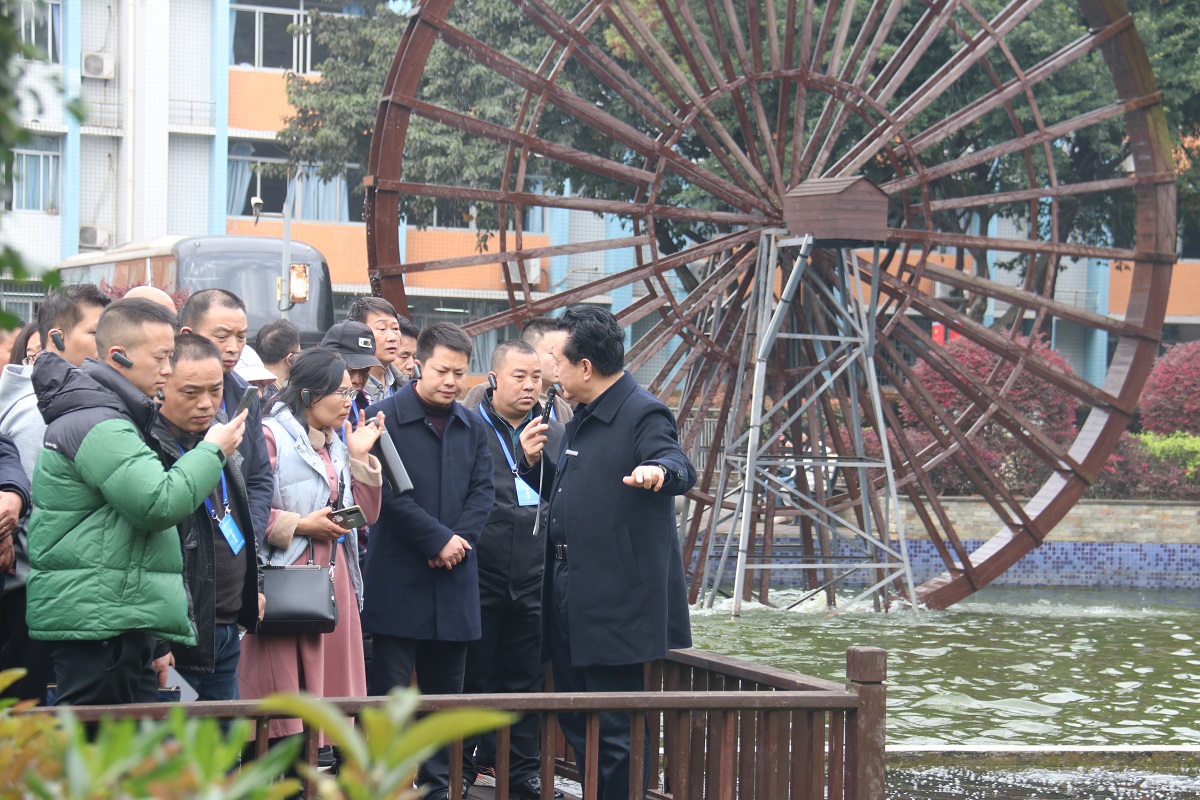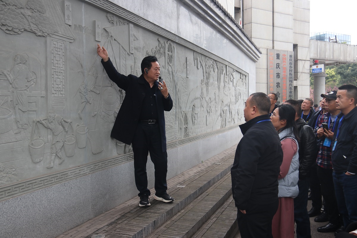 在学校“巴渝耕织图”前,考察组成员们驻足欣赏,被学校深厚的文化底蕴所吸引,王华平校长向大家介绍了巴渝地区特有的耕作技术、水利设施和口口相传的农耕育人故事,让考察组对巴渝农耕文化有了更加深入的了解。