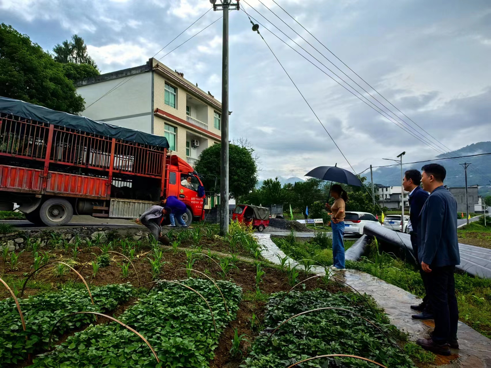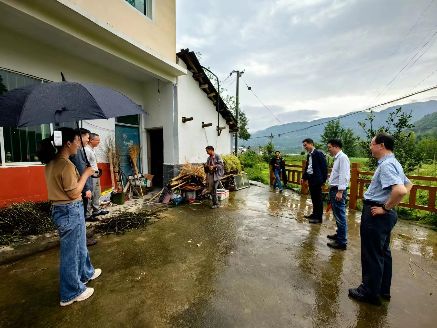 到达三江村时,正值中午,天空又下起了中雨,农校一行人顾不得旅途劳顿,与保家镇三江村第一书记向勇、村党支部书记刘光会、村党支部副书记张小丰等一道,冒雨将仔猪送到农户家中。