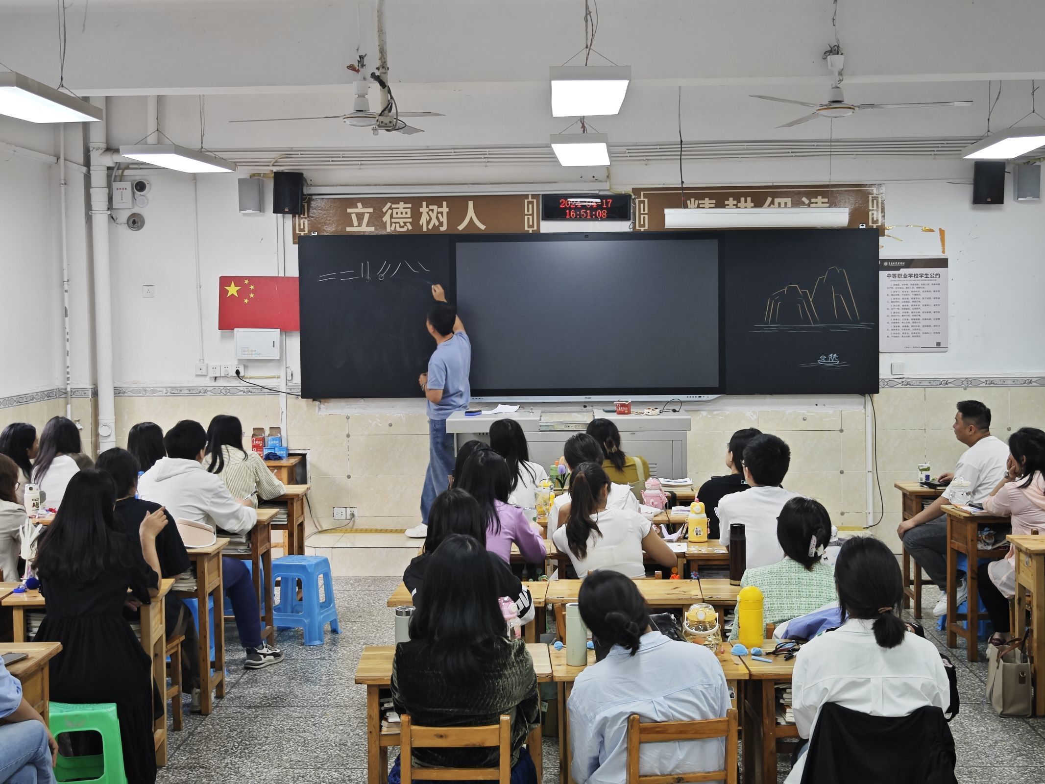 与此同时,陈婧老师则从绘画的视角,为教师们展示了一个全新的教学维度。她娴熟地将绘画技巧与理念融入板书设计之中,使得原本呆板的板书瞬间变得生动活泼。陈老师的这一创新举措,不仅极大地激发了教师们的创造活力,更为他们提供了更加多元化的教学方法和手段。