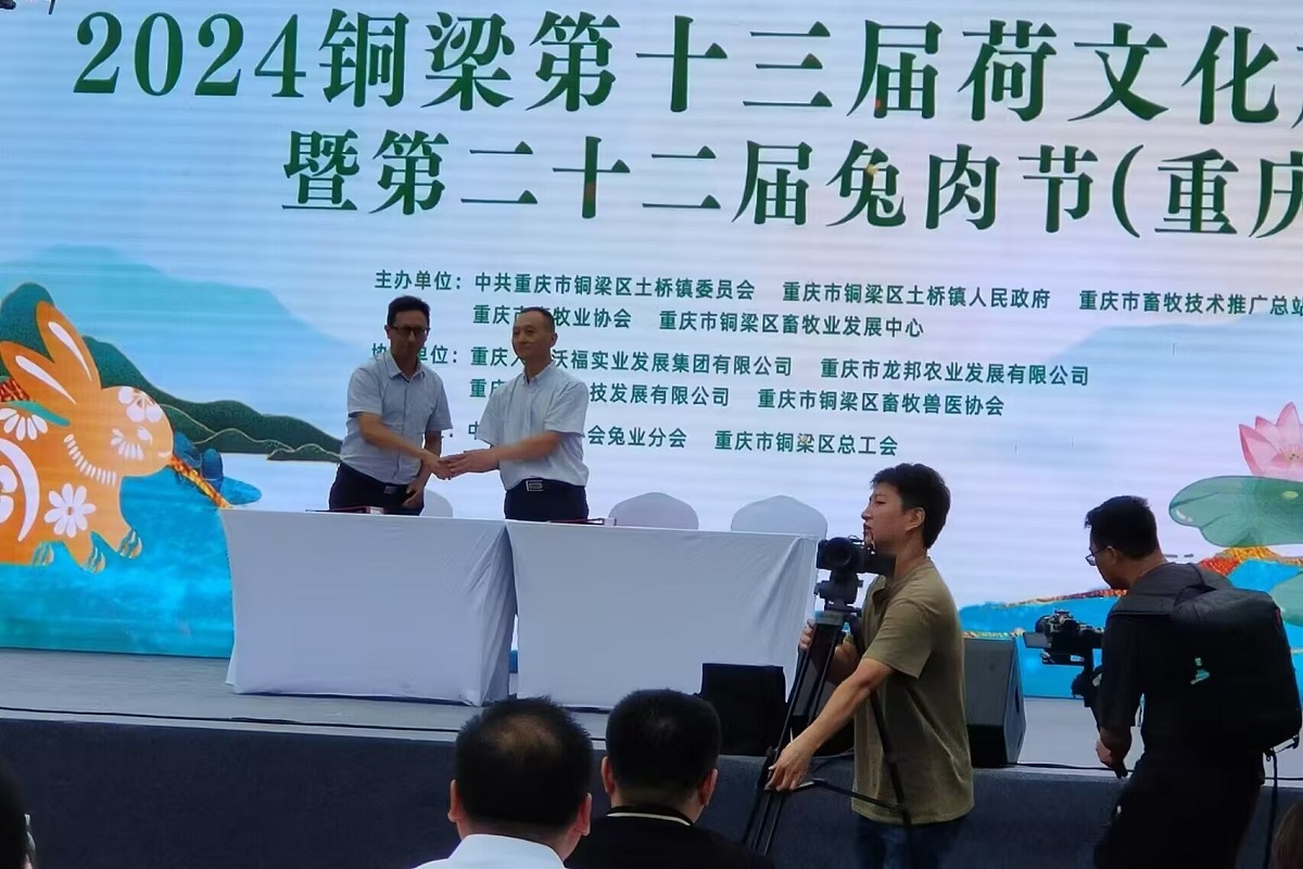 2024年6月21日,我校纪委书记敖建同志、动物科学系主任谷达任同志代表学校出席2024年第十三届荷文化旅游节暨第二十二届兔肉节(重庆)活动,并与本地知名企业重庆兔管家科技发展有限公司共同签署了校企合作协议。本协议的签署标志着我校与“兔管家”在产学研合作方面迈出了坚实的一步。双方将在科研成果转化、专业人才培养和实习实训基地建设等方面展开深度合作,旨在促进地方经济发展的同时,为学生提供更多的实践机会和发展平台。