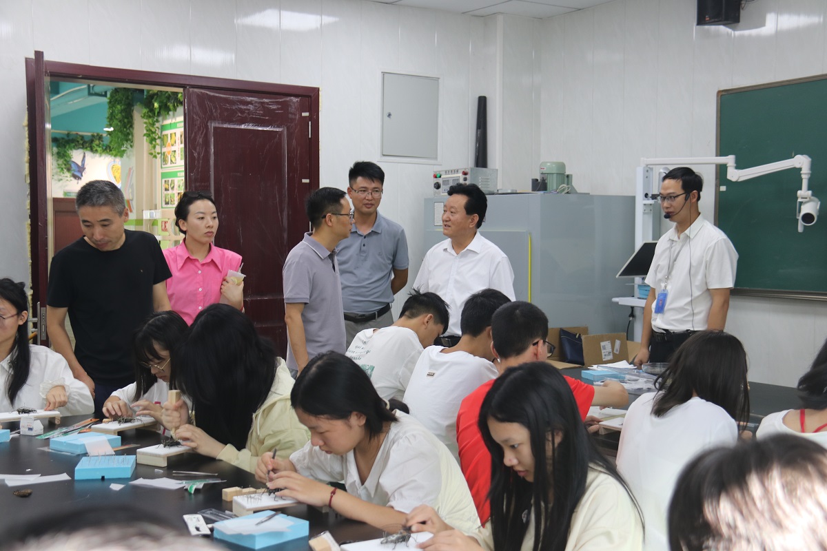 高温酷暑难挡关怀之情。王华平校长和陈光涛副校长亲临植物科学系各实训室,关心学生的学习情况。他们亲切地与学生交流,询问学习中的困难与收获,耐心倾听学生的想法和感受。王华平校长为学生详细讲解专业发展前景,鼓励大家一专多能,努力学习专业知识和技能,为社会发展和乡村振兴积蓄力量。学生们深受鼓舞,纷纷表示将不辜负期望,努力提升自己。