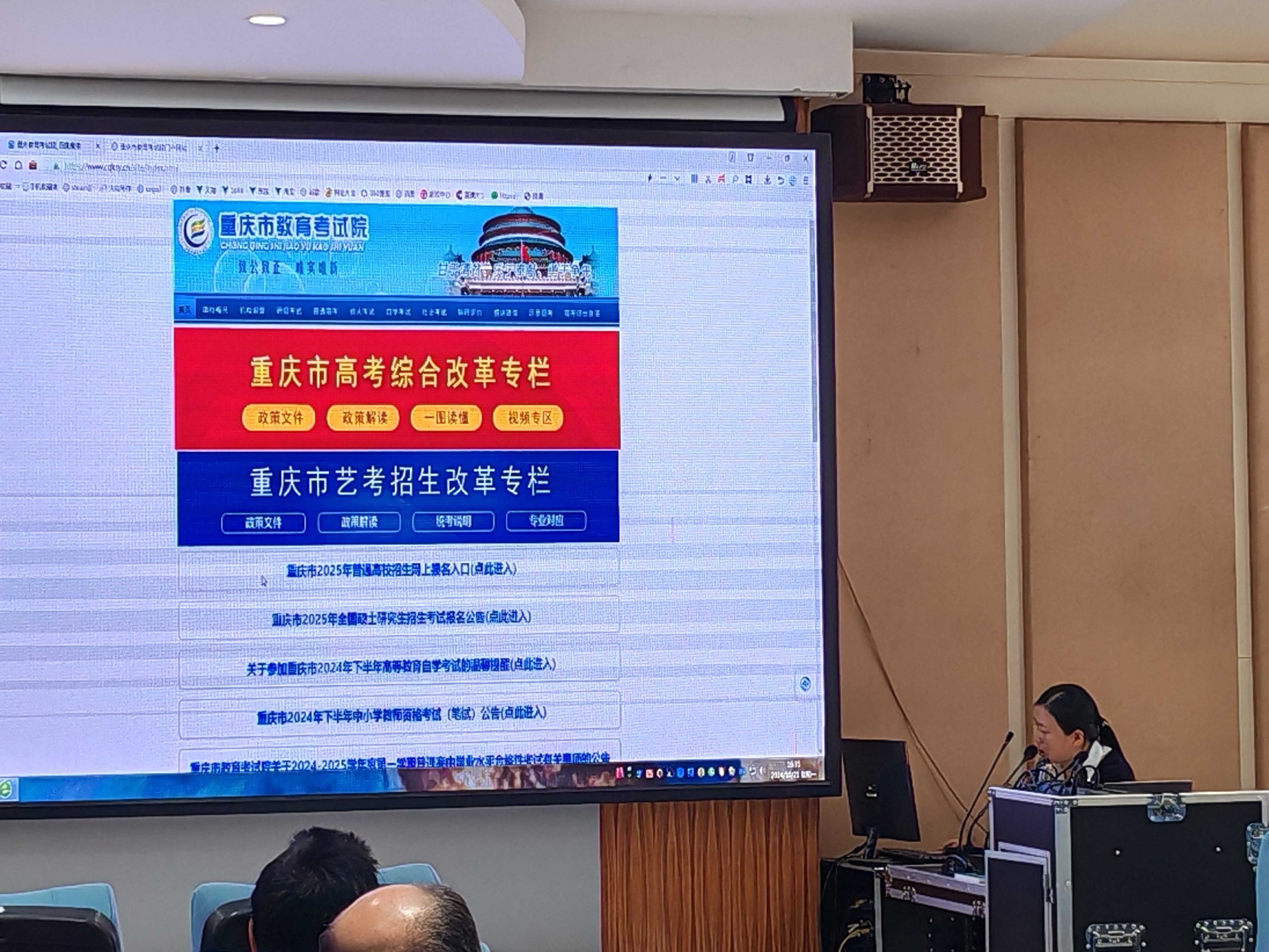为贯彻落实《重庆市教育考试院关于做好重庆2025年普通高校招生考试报名工作的通知》的相关规定,扎实做好2025年高职分类考试报名工作,10月21日,我校2025年高职分类考试报名工作培训会在德润厅召开,确保报名工作有序进行。