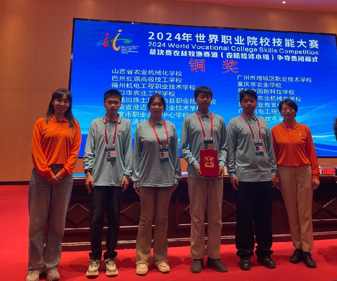 10月28日,农机检修赛项在江西省兴国中等专业学校圆满落幕,57支参赛队选手参与技能比拼,我校学生谢永康、符升龙、邓洪程和肖杨滟在农业机械系教师黄建兰、李林芷的指导下,荣获铜奖。