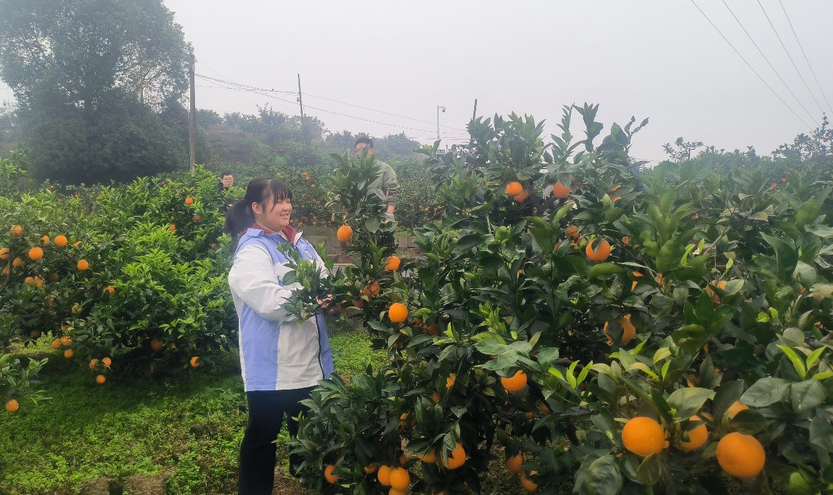 图一:我校学生查看橙子生长情况,为直播做准备