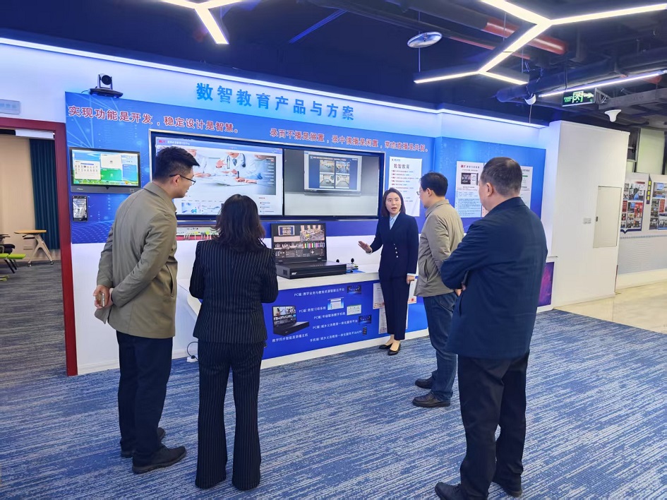 在调研参观环节,晋才富熙科技有限公司带领调研团队参观了公司展厅,介绍了公司的发展历程、科研成果、智慧校园建设典型案例。