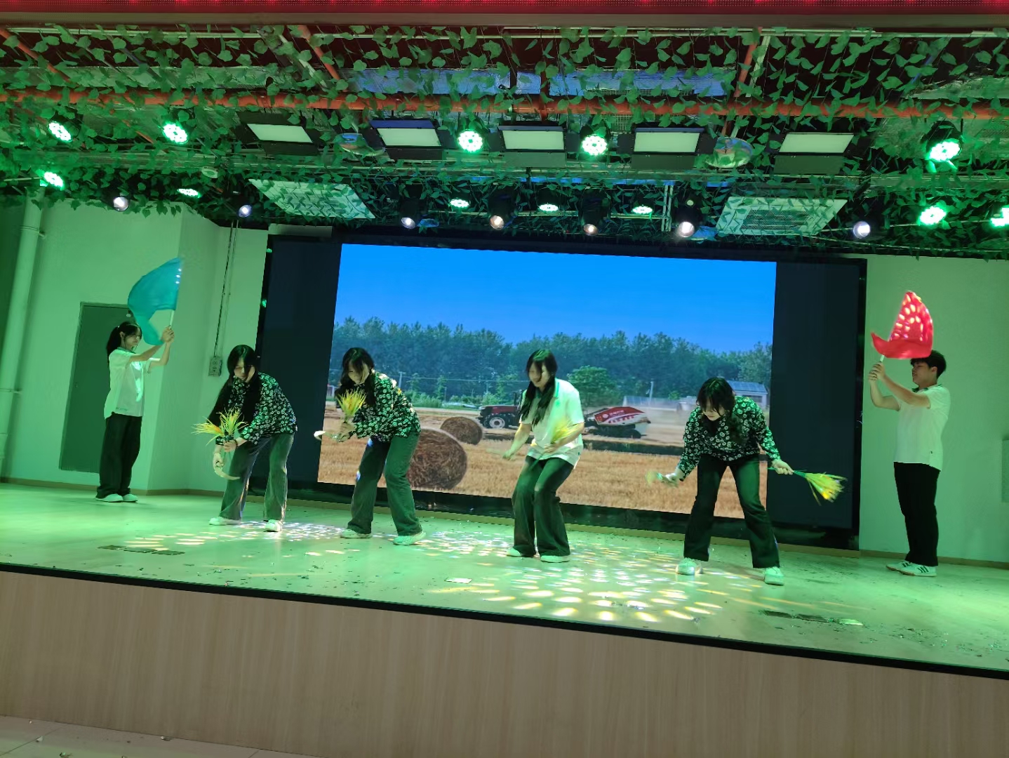 汇演节目深度融合传承农耕文化的元素:既有《薅草锣鼓》等特色民歌,展现学生的民族情怀;又有融合现代舞与农耕元素的创意舞蹈《种子》;舞台剧《扁担悠悠巴渝情》以幽默形式传递爱农意识;音乐剧《山城脊梁》则彰显传统职业精神的力量。特别值得一提的是,由畜禽生产技术专业学生自编自演的灯光秀《农耕秀》,通过数字化艺术呈现生物科技之美,荣获本次汇演一等奖。