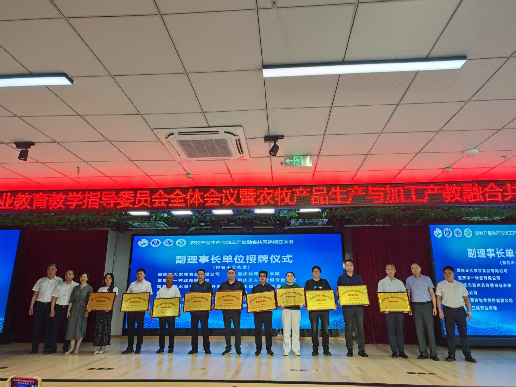 市农业农村委、市教科院、高新区等有关领导共同为农牧食品生产与加工产教融合共同体的理事长单位和副理事长单位进行了授牌。