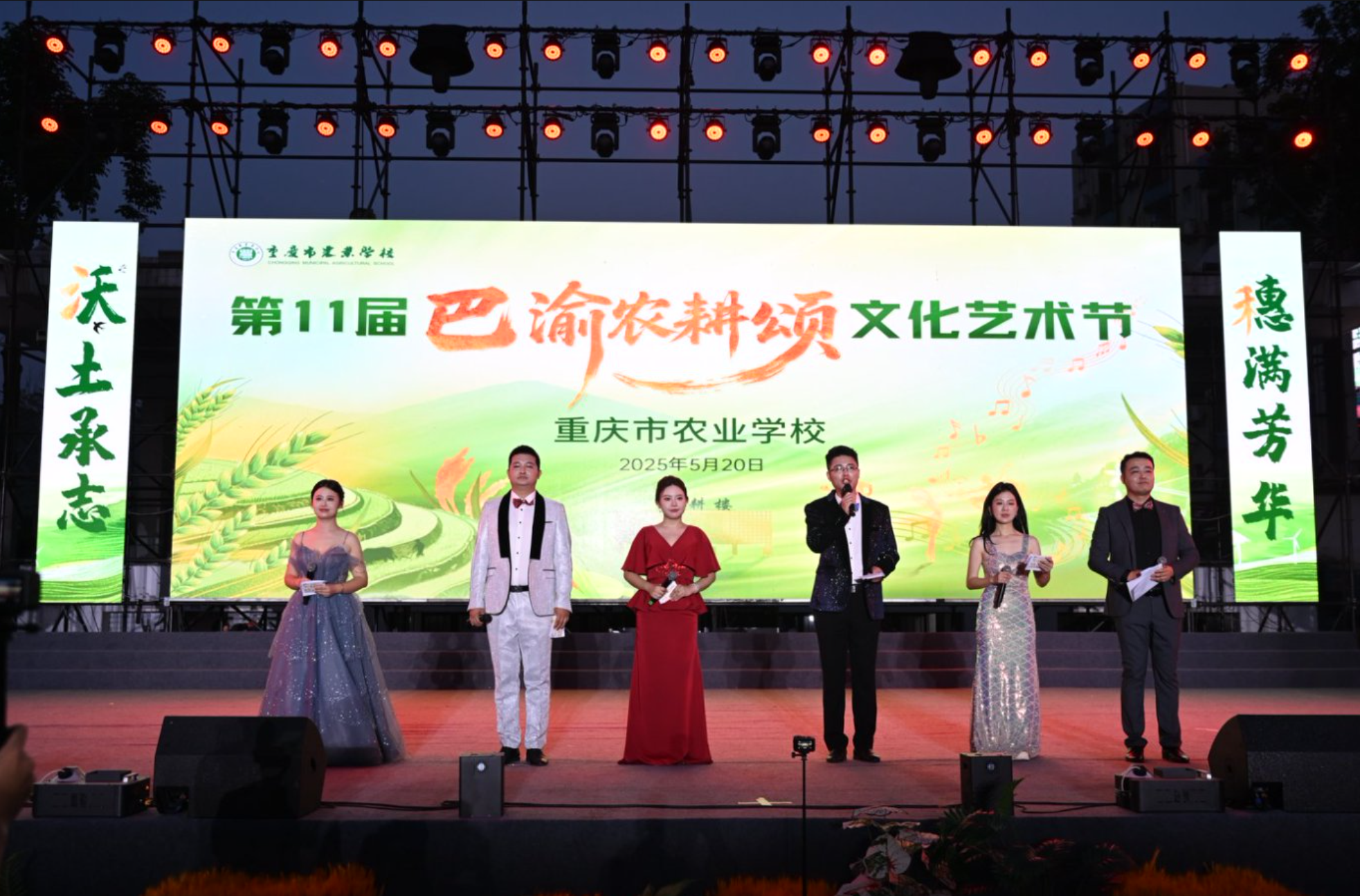2025年5月20日晚,在学校运动场隆重举办了一年一度的文化盛宴——重庆市农业学校第十一届“巴渝农耕颂”文化艺术节。本次艺术节活动是我校贯彻上级关于“职教活动月”工作部署开展的系列活动之一。本次文化艺术节以“巴渝农耕颂”为主题,通过丰富多彩的文艺表演,展现了农校学子对传统农耕文化的传承与创新,彰显了新时代农业职业教育的蓬勃生机。