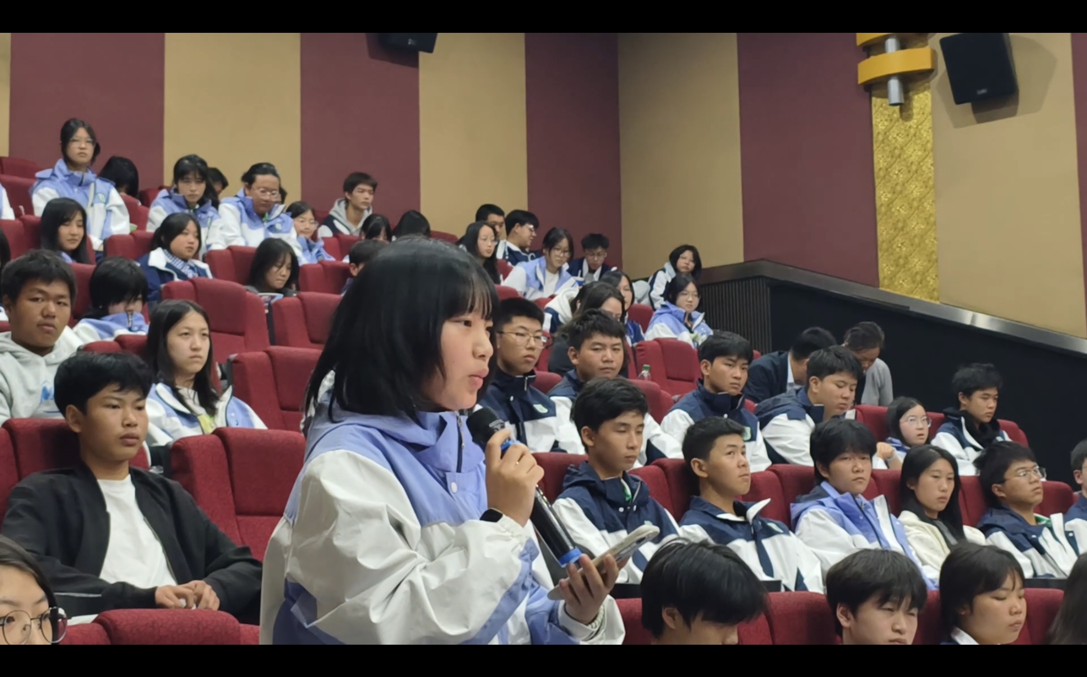 活动最后,学校党委书记王华平作总结讲话。王书记首先对本次活动的成功举办和同学们的深刻感悟给予了充分肯定。他强调,历史是最好的教科书,也是最好的清醒剂。他希望全体同学以此次观影活动为契机,一要深刻铭记历史,从民族的深重苦难和辉煌胜利中汲取智慧与力量,不断增强民族自尊心、自信心和自豪感;二要赓续红色血脉,自觉传承和弘扬伟大的爱国主义精神和革命英雄主义精神,将其内化于心、外化于行;三要勇担时代重任,将观影激发的热情投入到日常的学习和实践中去,坚定理想信念,练就过硬本领,努力成长为可堪大用、能担重任的栋梁之才,在全面建设社会主义现代化国家的新征程中书写无愧于时代、无愧于历史的青春篇章。
