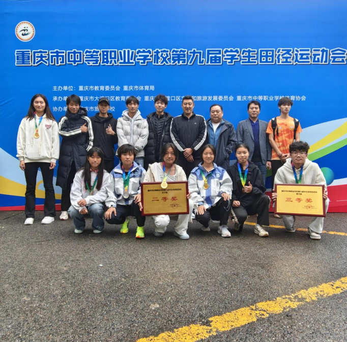 2025年10月30日至11月2日,重庆市中等职业学校第九届学生田径运动会在重庆市旅游学校开幕。重庆市农业学校运动健儿勇创4金1银1铜的辉煌战绩,并荣获女子团体二等奖、男子团体三等奖,为学校体育事业写下浓墨重彩的一笔。