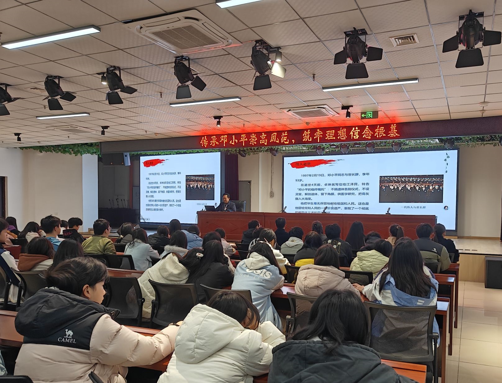 2025年12月12日下午4点30分,重庆市农业学校学生活动中心内气氛庄重而热烈,一场由学校党委书记王华平主讲的专题党课在此举行。